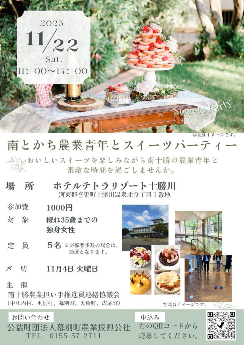 おいしいスイーツを楽しみながら南十勝の農業男性と素敵な時間を過ごしませんか?
