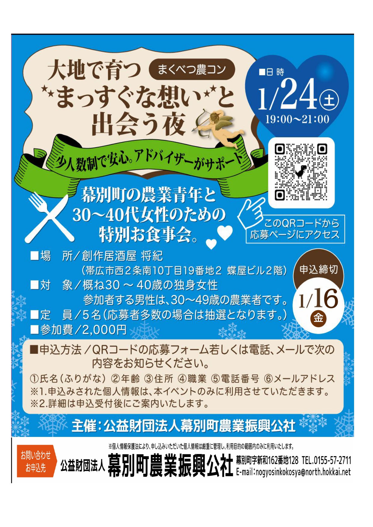 ★まくべつ農コン ~大地で育つまっすぐな想いと出会う夜~★