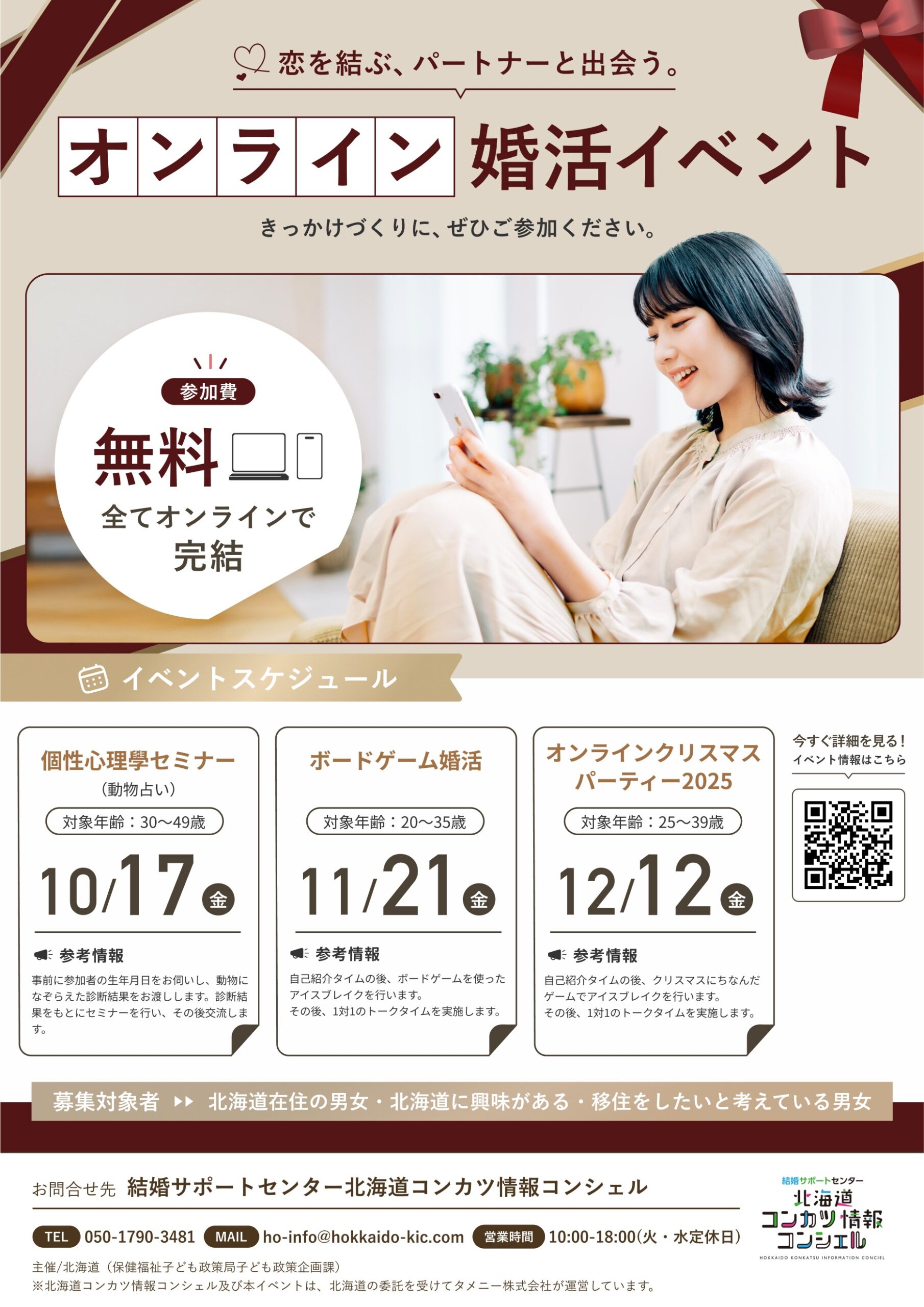 北海道コンカツ情報コンシェル\北海道主催/オンライン婚活イベント★オンラインクリスマスパーティー2025★