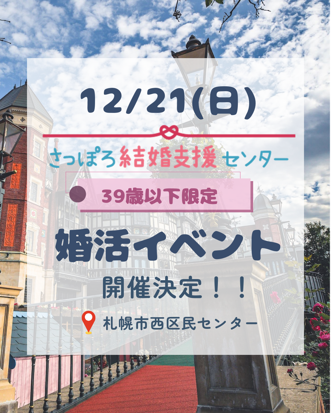 北海道コンカツ情報コンシェル2025年12月21日(日)〈札幌市西区〉 39歳以下婚活イベント!さっぽろ結婚支援センター主催